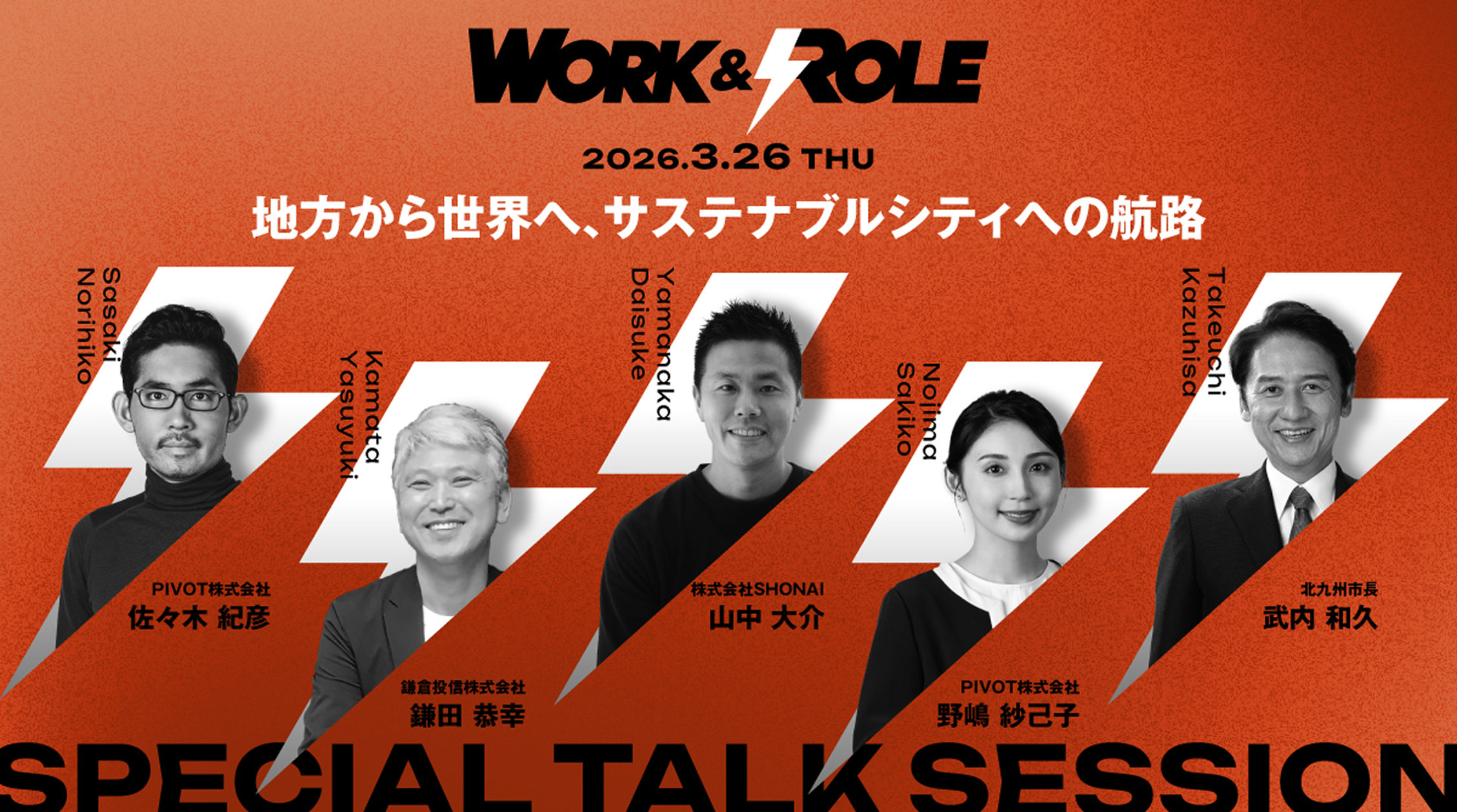国内最大のテック系エコシステム形成を推進する北九州市のスタートアップコミュニティが開催するイノベーションカンファレンス。WORK AND ROLEは、国内のイノベーション人材が北九州に集う北部九州最大級のイベント。